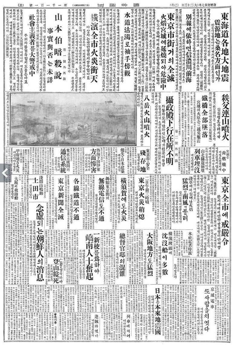 1923년 9월 3일 동아일보 관동대지진 첫번째 기사