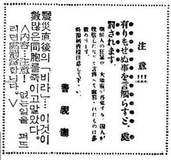 조선인이 폭동을 일으킨다, 우물에 독을 푼다, 불을 지른다, 여인을 강탈한다 등의 황당한 유언비어가 퍼진다.