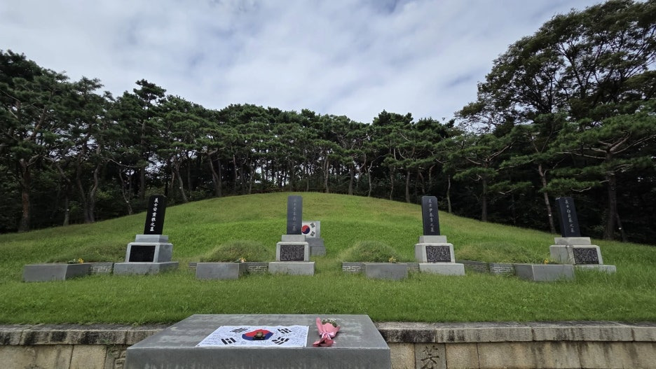 도마 안중근 장군의 가묘가 삼의사 묘지와 나란히 자리 잡고