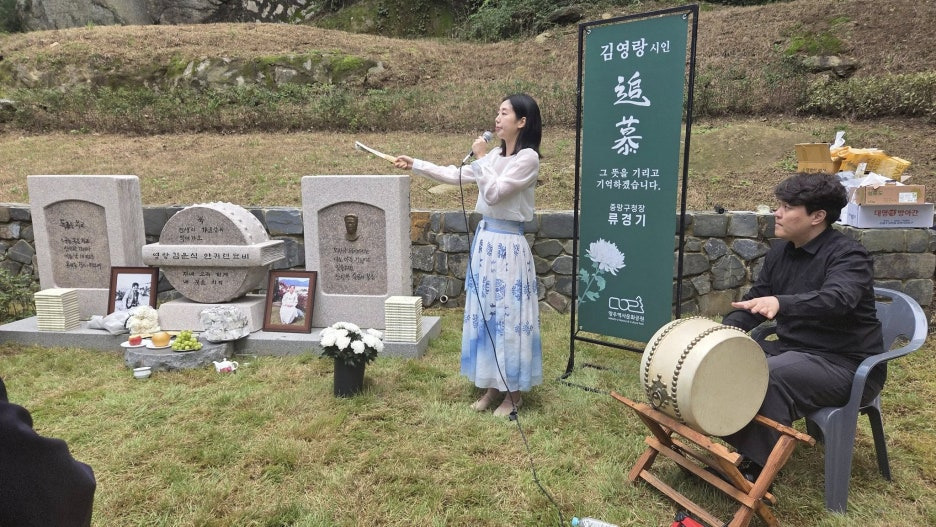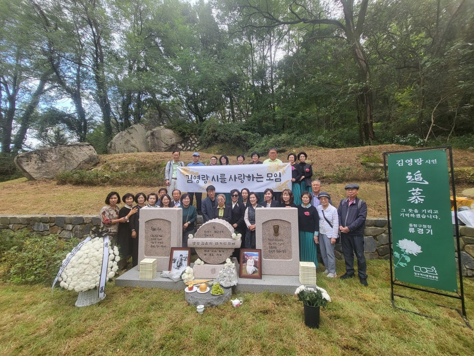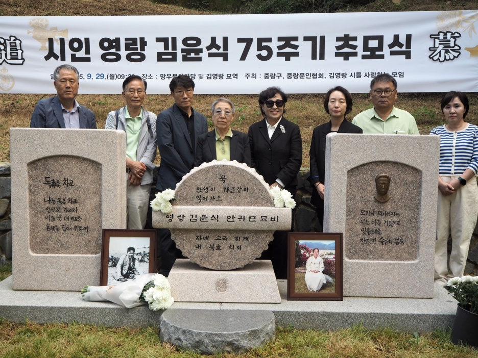 유족으로는 시인의 막내딸 김애란 여사, 장손인 김우식 종손부인 이윤정 부부, 장손녀인 김혜경 교수 등이 참석했다.