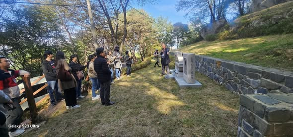 오늘 오전 10시부터 12시까지 망우역사문화공원 사색의 길을 오르내리며 답사를 하였다. 대상은 중랑구 sns 서포터즈 합동 워크숍에 참가한 활동가 14명이었다. 실제 답사 시간은 한 시간도 주어지지 않았다. 25인승 버스로 사색의 길을 돌았다. 버스 안 의자에 앉아 지나가며 해당 인물에 대해 해설을 하였다. 버스에 내려 참배한 묘역은 시인 김영랑 한용운 아동문학가 방정환 한국의 잔 다르크 유관순 열사였다. 중랑전망대에서 한북정맥과 서울시 전경을 조망하였다. 대부분 답사를 몇 번씩 하였던 고수들이라, 포털에 떠 있지 않은 일화를 중심으로 해설을 요구하였다. 시간에 쫓기었지만 빠트리지 않으려 노력하였다. 마지막 인사를 나눌 때, 지금까지 망우리 해설 가운데 가장 다양하고 유익한 시간이었다고, 몇 분의 서포터즈가 인사를 하였다.