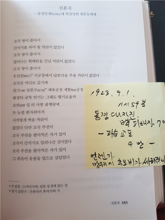 인문음악 토크콘서트 가행 '돛대도 아니 달고' 망각의 101년 관동대학살 조선인 희생자 진혼의 밤 한국문학 항일저항시의 출발 공연도 뜻깊게 마무리 지었다.