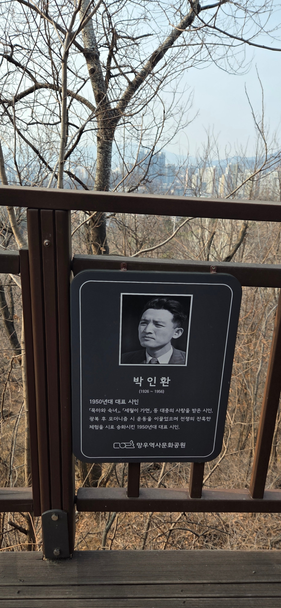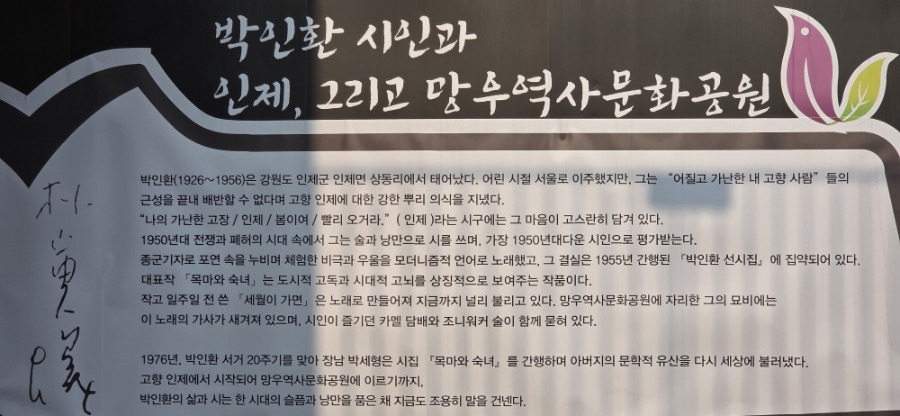 중랑망우공간 안내문에 특별히 걸어놓은 시인 박인환과 인제 그리고 망우역사문화공원 / 사진 정종배